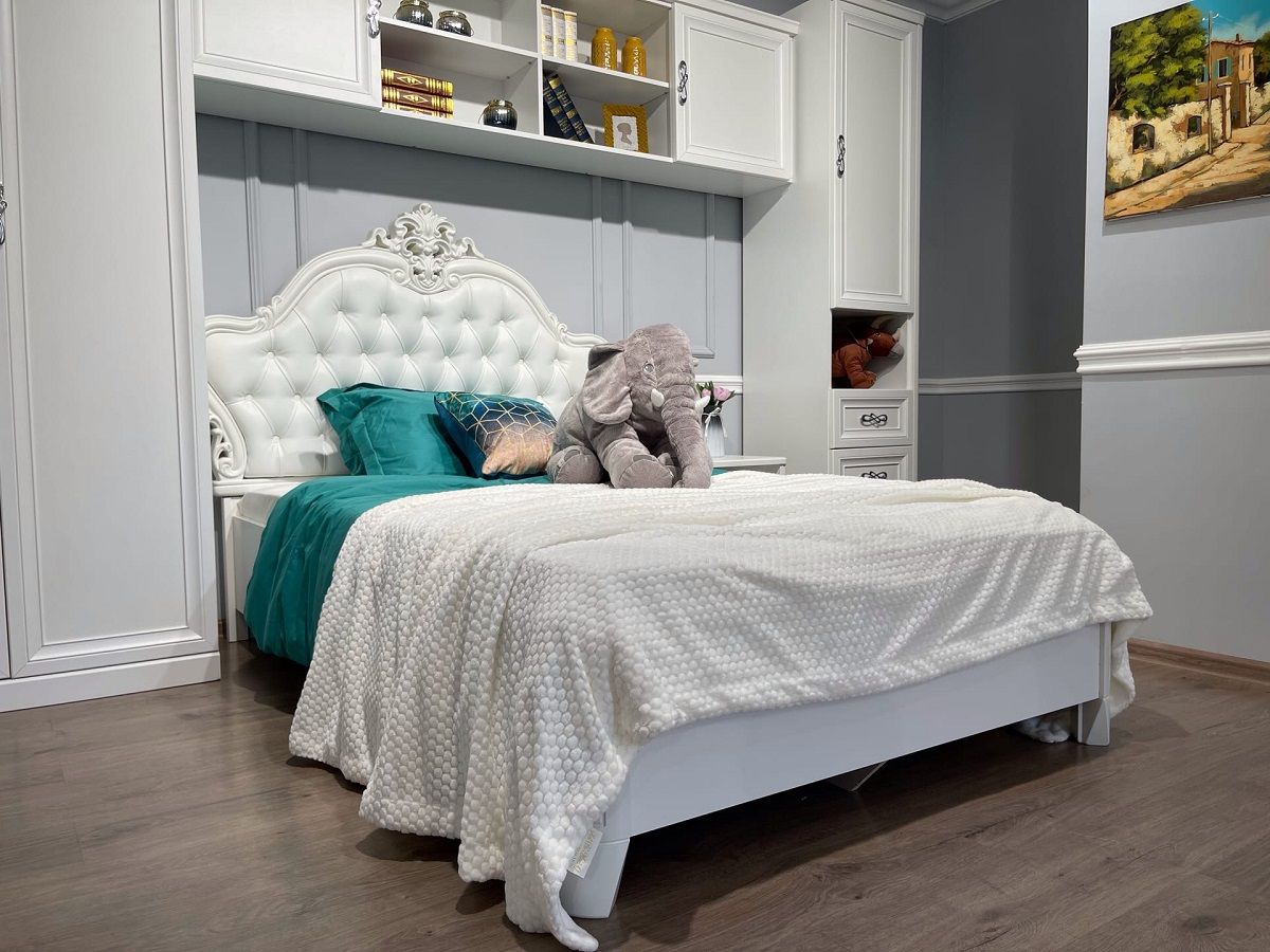 Стиль – неоклассика (модное сейчас направление в дизайне), эта спальня подойдет к