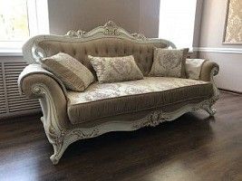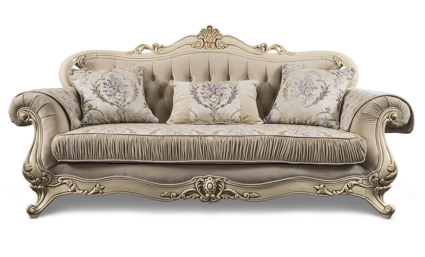 Резные элементы 3-х местного дивана «Мона Лиза» покрыты итальянской краской на водной основе и задекорированы эмалью под золото. В качестве наполнителя для сиденья производитель «Эра-Мебель» использовал латексированный пенополиуретан, эластичный и долговечный материал с антибактериальными свойствами. Эта модель дивана сочетает красоту и надежность, грацию и шик. Она подходит гостиной, домашнему кабинету и библиотеке, оформленной в строгом классическом стиле.