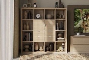 КАЛЛАКС / ФОРА Стеллаж ИКЕА / IKEA 4 с четырьми открытыми ячейками, тамбурат, дуб беленый