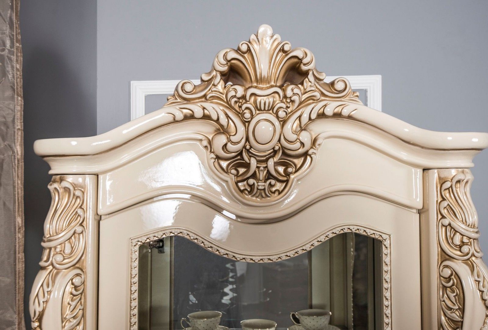 Гостиная «Джоконда» крем глянец – это готовый набор из трех элементов, произведенный на российской фабрике «Эра». В него входят две элегантных витрины и ТВ тумба в аналогичном цвете и стилистике. Эта мебель из ЛДСП и МДФ создана для тех, кто устал от холодных оттенков и лаконичности минимализма. Коллекция идеально интегрируется в классический стиль и барокко. Она станет красивым лицом вашего дома и отражением статуса.