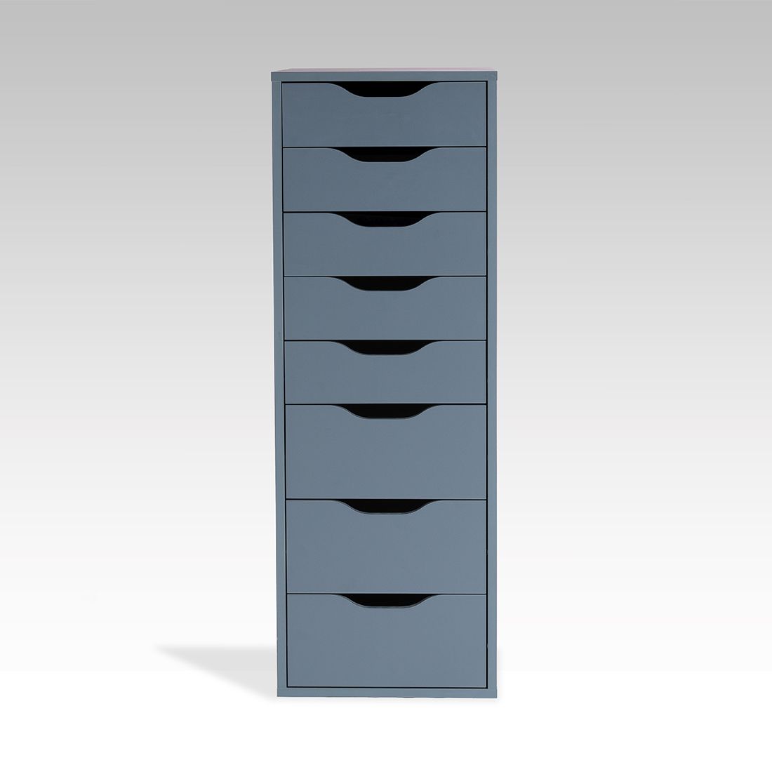 Комод Ингар 8, 36x102x53, цвет серо-бирюзовый. Высокий узкий комод с восьмью выдвижными ящиками. Конструкция: ДСП, поверхность, декорированная бумага, окраска УФ материалами. Фасады ящиков без ручек, с вырезами для удобного выдвижения. Ящики переменной высоты позволяют использовать их для хранения разнообразных предметов. Гарантийный срок для жилых и общественных помещений 24 месяца.