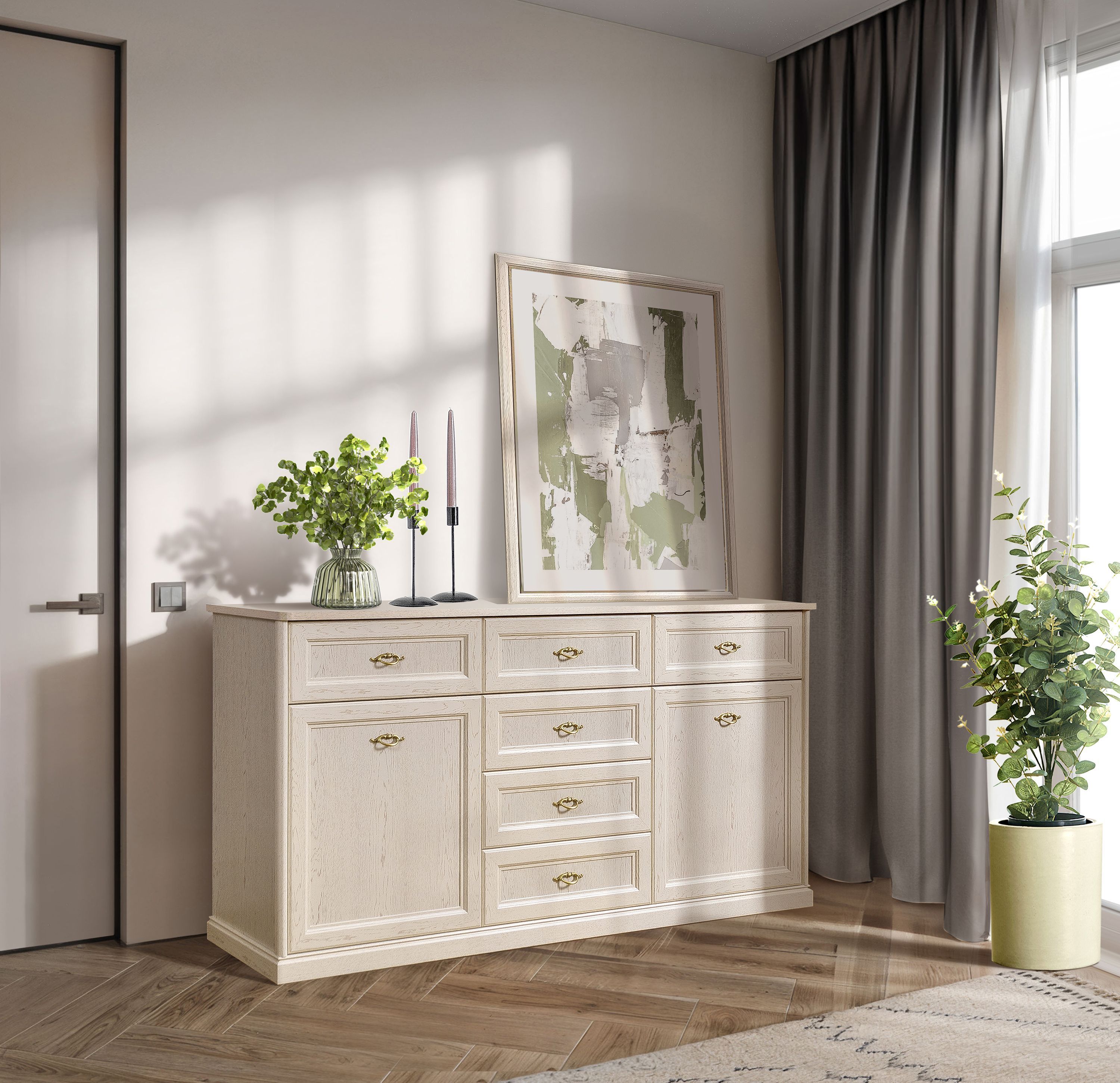 Комод большой Венеция дуб седан ВНКМ-3