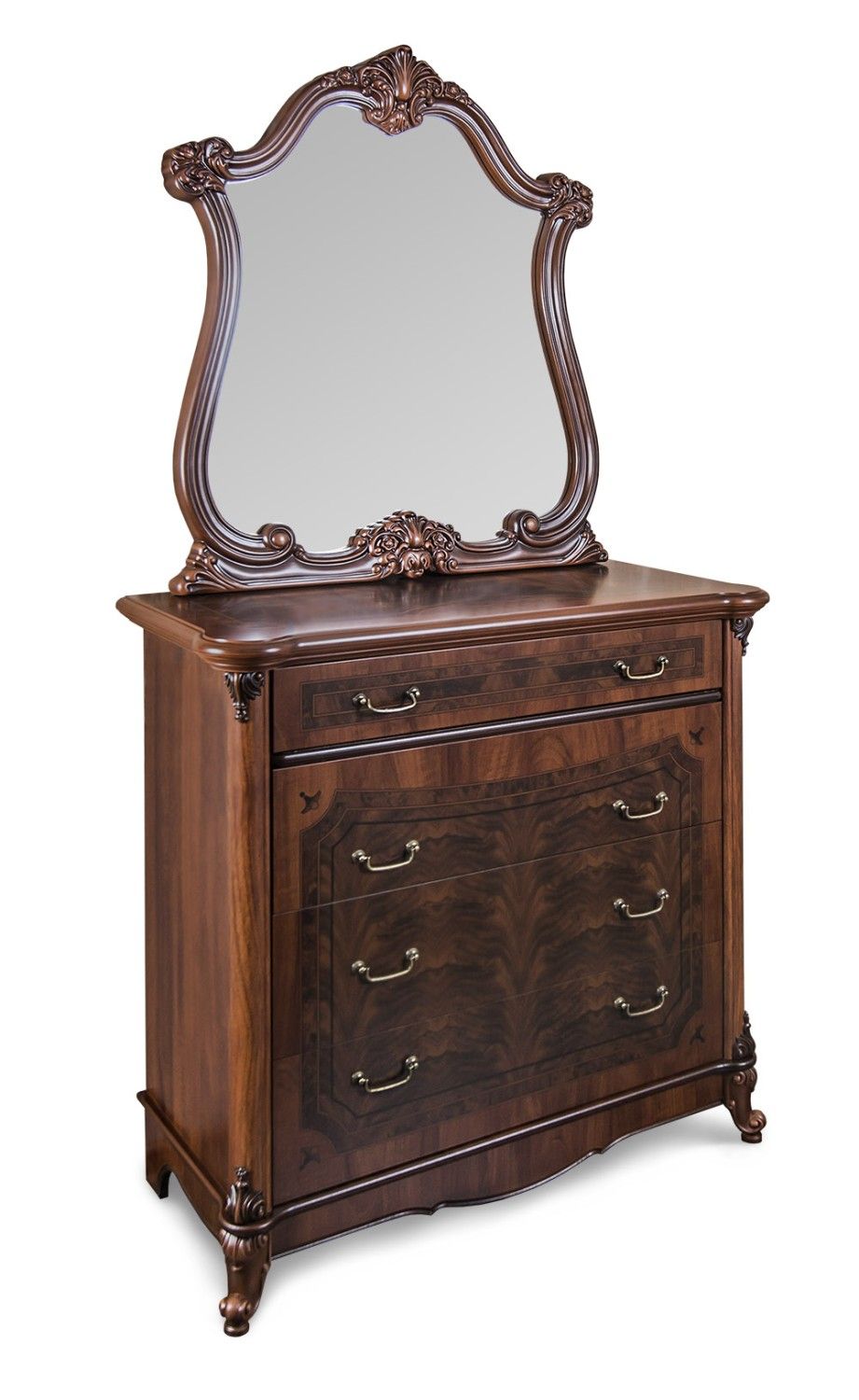 Туалетный стол с резной столешницей, на изящных ножках с элементами фрезеровки и с зеркалом, обрамленным в изысканный багет –все это станет самым любимым и притягательным местом для очаровательной владелицы!