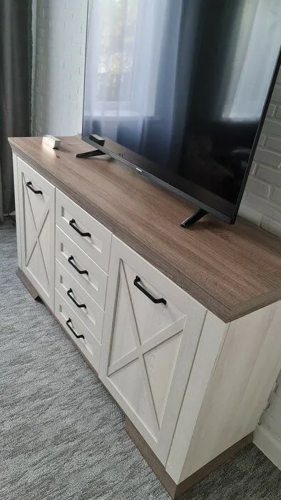 Купили комод серии Марсель, тк шкафы уже были. Тяжелая, прочная, качество понравилось. Комод, муж собирал сам. Говорит, не сложно. Мебелью довольны.