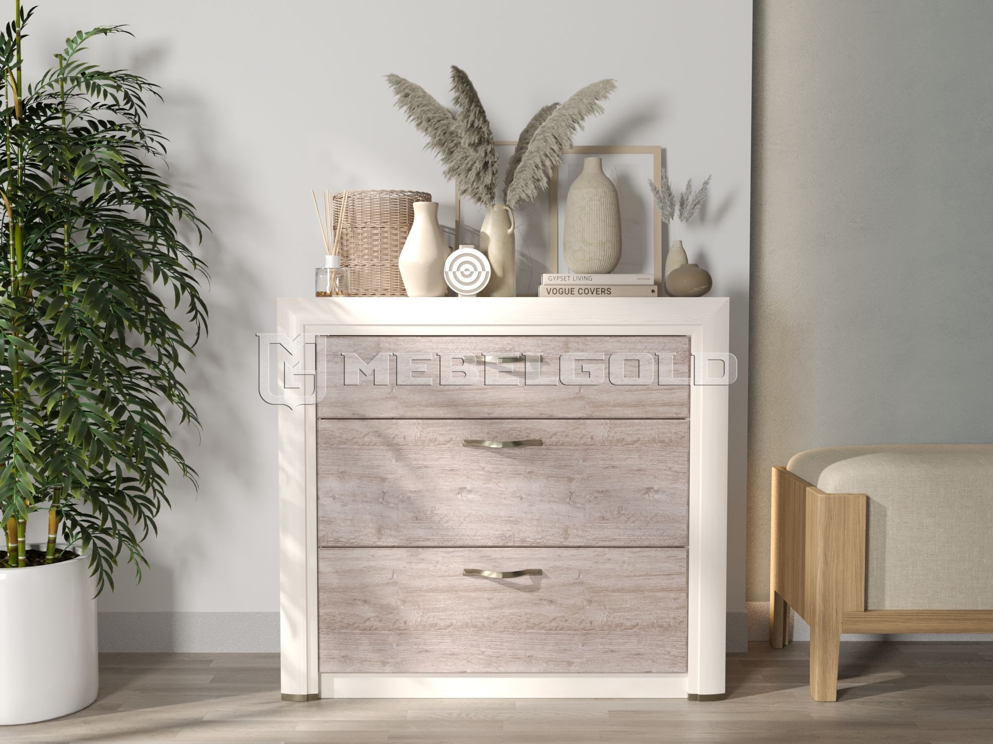 Стильный комод с древесной текстурой Olivia 3S – идеальное решение для наполнения спален и молодежных комнат. Он обладает всеми преимуществами домашней мебели: вместительность, удобство использования и устойчивость. Модель имеет ширину 96 см, глубину 36 и высоту 87 см. При таких параметрах она сохраняет стабильное положение и не переворачивается.