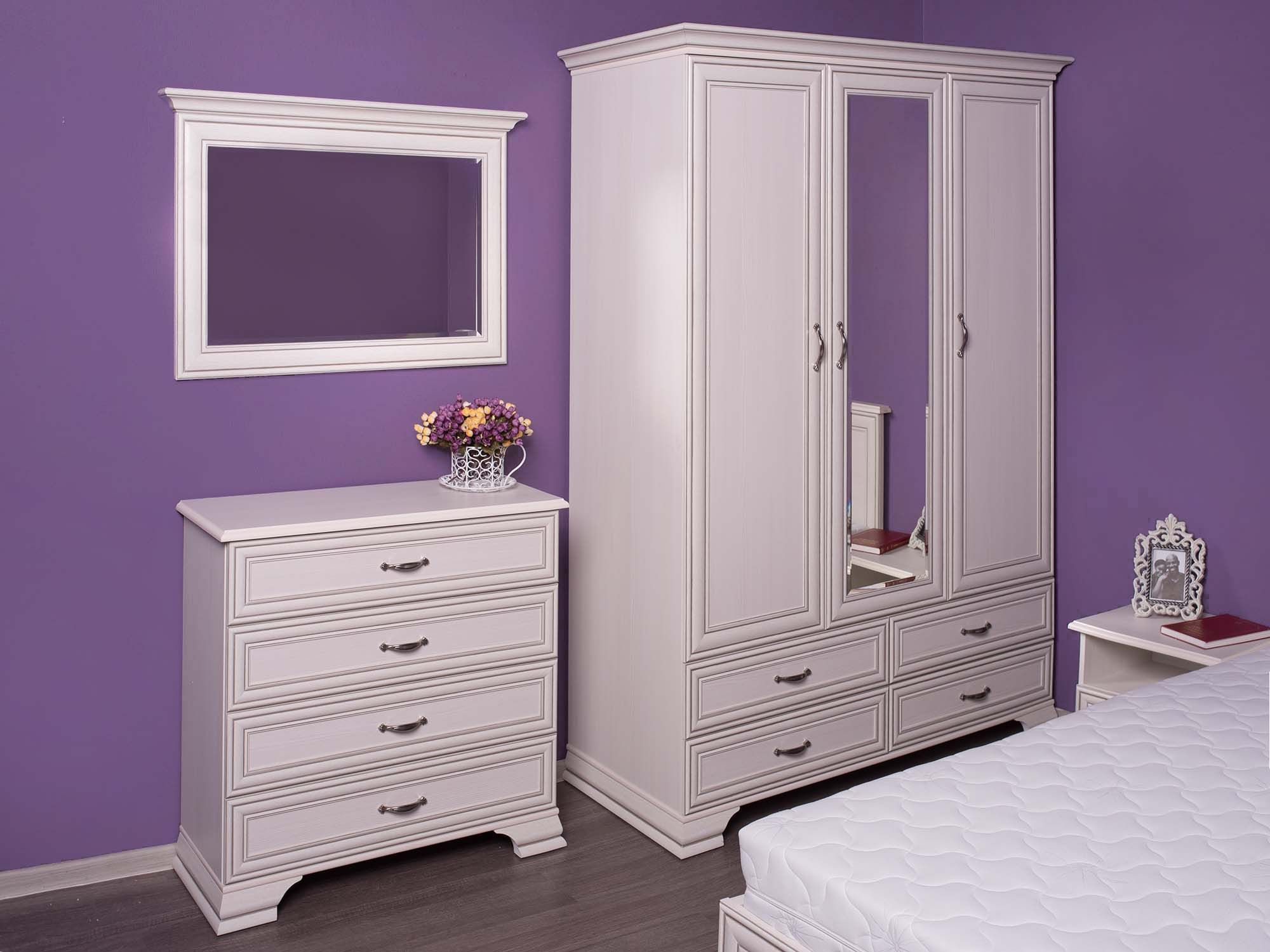 Нежный кремовый цвет вудлайн и отчетливая древесная текстура смотрится шикарно на фоне рамочно-филенчатых фасадов и заставляет любоваться внешним совершенством изделия. В нем гармонично все, от правильно подобранных размеров до внешнего покрытия. Матовая поверхность комода не сохраняет отпечатки пальцев и не создает бликов.