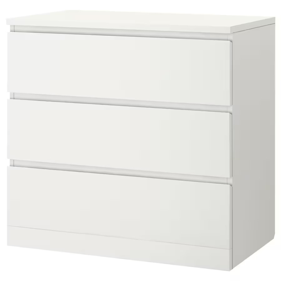 Комод Варма 3, 803х400х775, цвет Белый. Стильный удобный комод с тремя выдвижными ящиками. Прекрасно дополнит интерьер и теплую уютную домашнюю атмосферу. Хорошие параметры функциональности (качественные телескопические направляющие, вместительность, удобство использования). Поверхность окрашена экологически безопасными материалами, продолжительное время сохраняет внешний вид. Отлично сочетается в интерьере со стеллажами и полками Фора, журнальными столиками и ТВ-тумбами Энкель, стеллажами Варма. Доступен к заказу не только в белом цвете, но и с покрытием натуральным шпоном (беленый дуб, черный). Преимущества: эстетичный внешний вид; вместительность; простая сборка; экологичность и высокое качество окраски (экологически безопасные материалы); высококачественные телескопические направляющие (мягкое открывание). Крепежные элементы (дюбель-гвозди) приобретаются Покупателем дополнительно в зависимости от материала стены. Гарантийный срок для жилых и общественных помещений 24 месяца.
