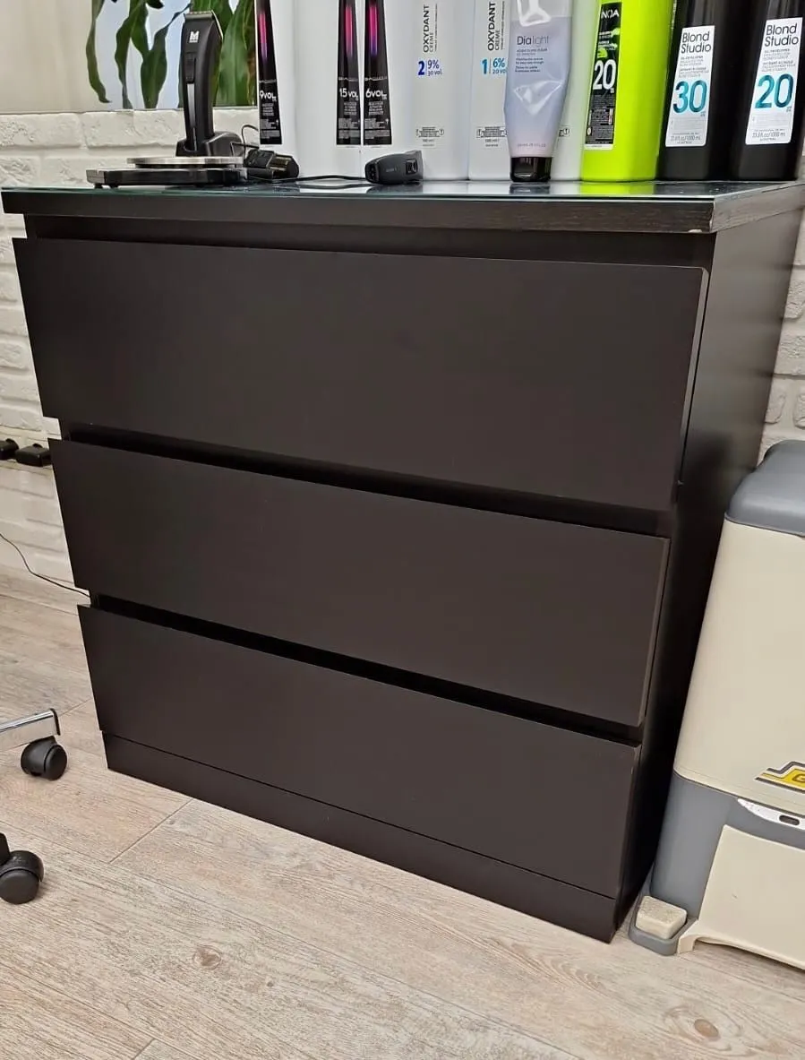 Комод Варма 3, 803х400х775, цвет Черный Ясень. Стильный удобный комод с тремя выдвижными ящиками. Изделия с покрытием натуральным шпоном привнесут в интерьер особые штрихи экологичности, натуральности, статусности. Прекрасно впишутся в разнообразный дизайн, станут неотъемлемой частью теплой уютной домашней атмосферы. Хорошие параметры функциональности (качественные телескопические направляющие, вместительность, удобство использования).