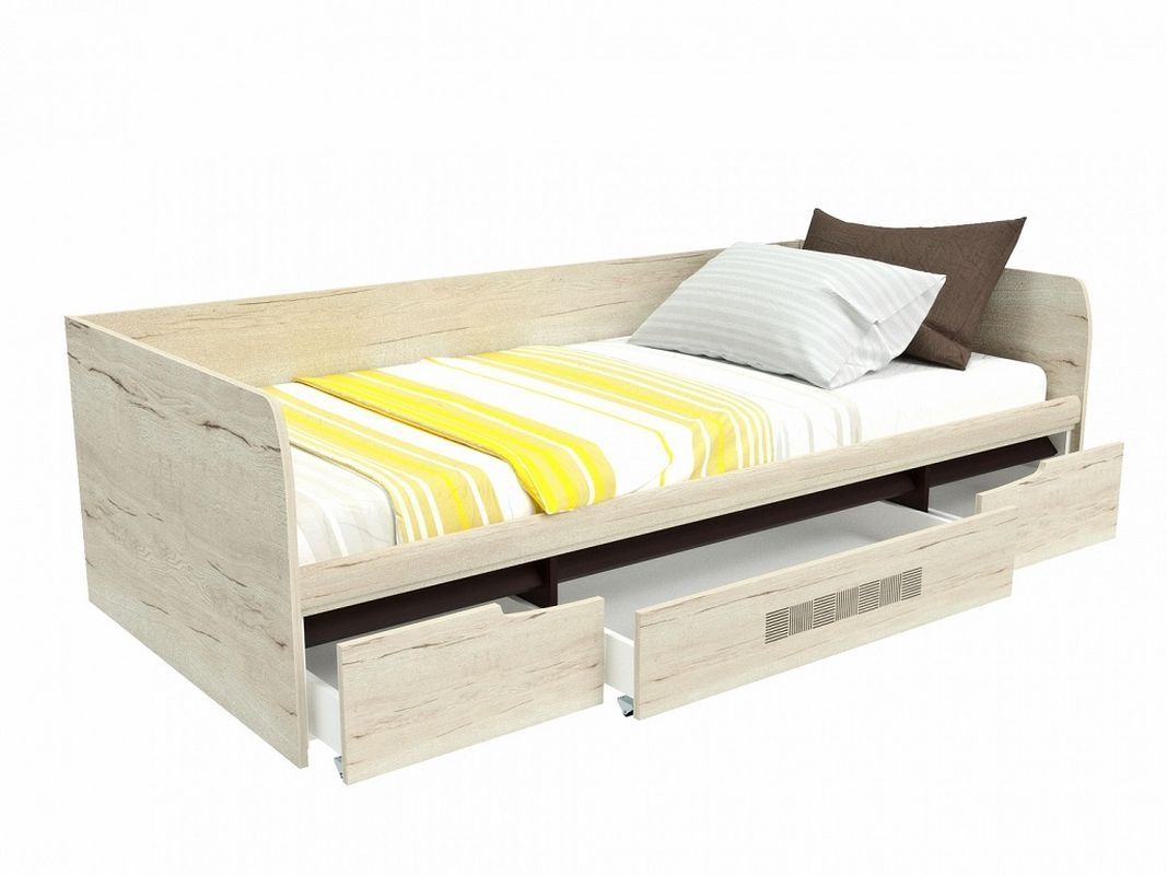 Кровать 900 с ящиками, Мале (2042*952*600) Дуб галифакс белый, 11226