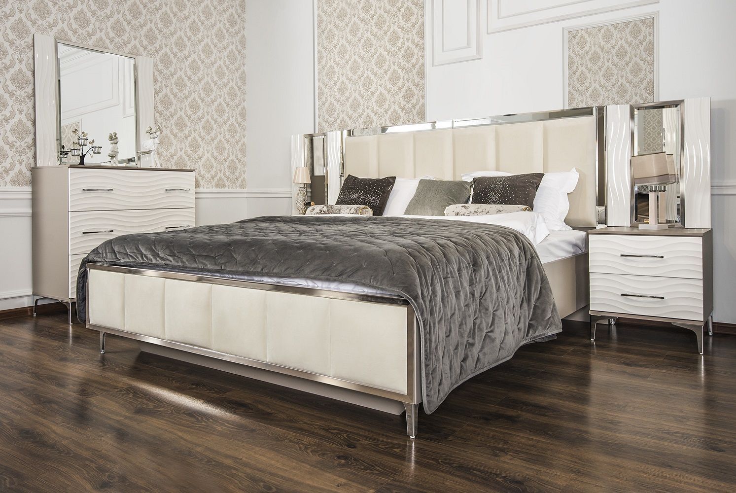 Кровать с декоративными фацетированными зеркальными рамками на изголовье – делает ее центром притяжения!