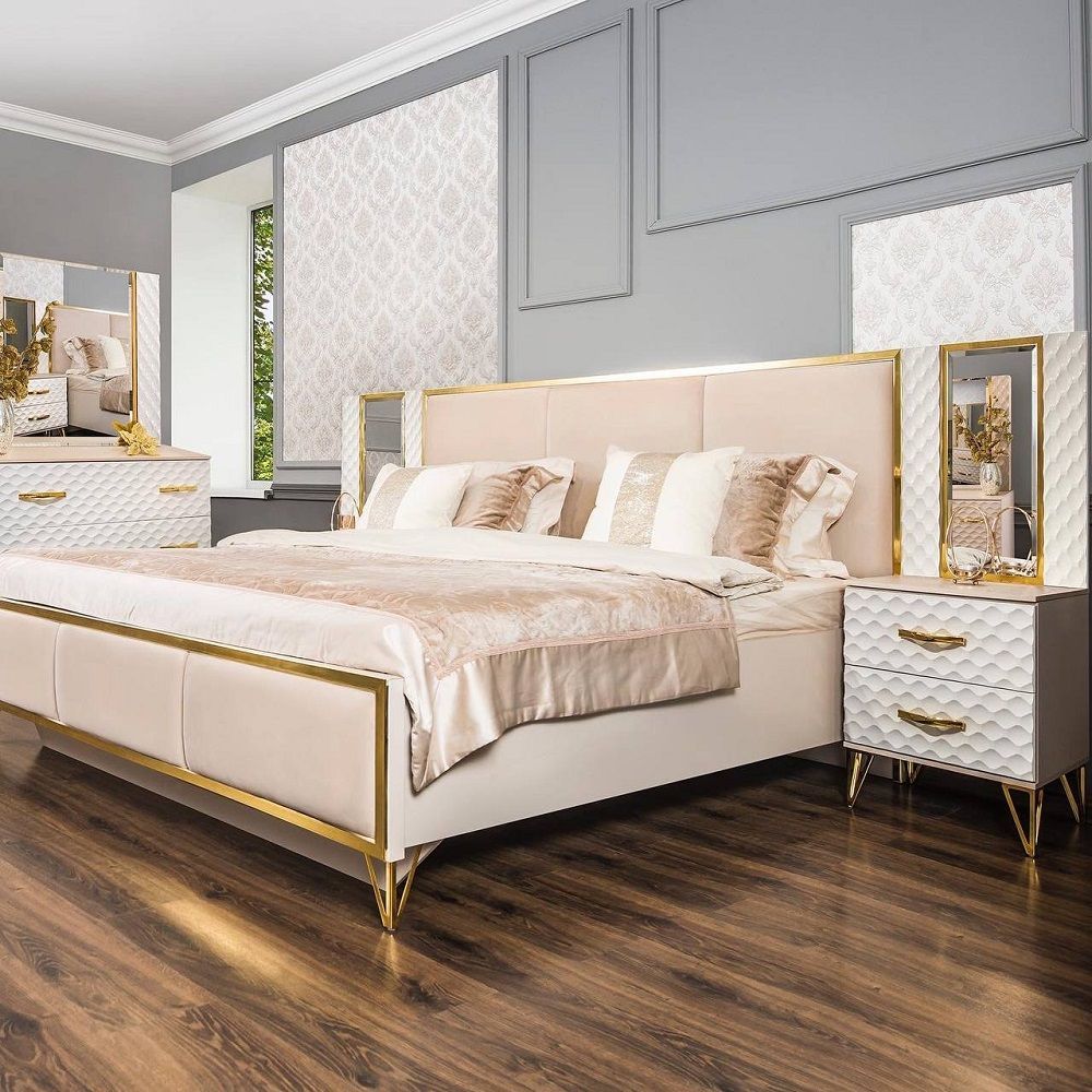Кровать с декоративными рамками на изголовье и изножье под латунь– делает ее центром притяжения! Ведь кровать в спальне главный элемент мебели!