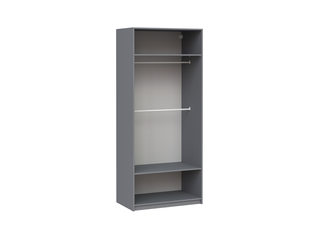 Стеллаж МАКС 100х58х233, цвет Серый Имеется возможность установки полок на желаемом уровне, имеется возможность установки штанги на желаемом уровне Толщины деталей: ДСП 18 мм Фурнитура: две штанги овальные металлические, полкодержатель пластмассовый с фиксатором