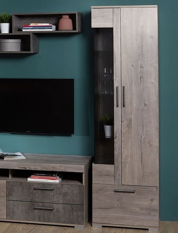 Пенал Д-3п со стеклом правый, Денвер (600*377*2020) Риббек серый, 31306