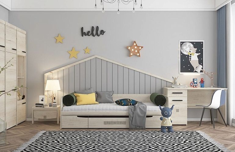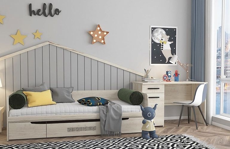 Кровать 900 с ящиками, Мале (2042*952*600) Дуб галифакс белый, 11226