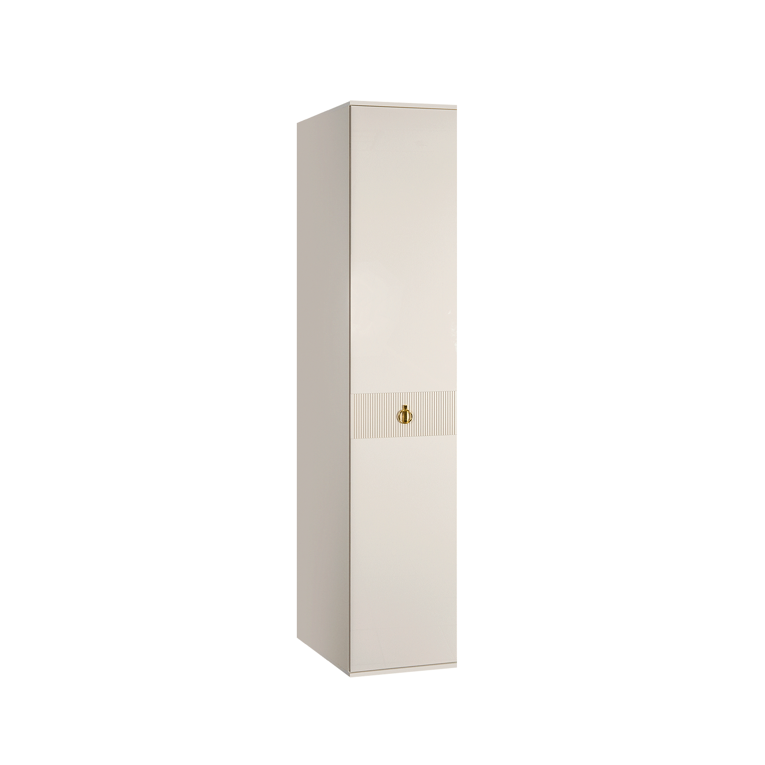 Узкий шкаф Rimini Solo с одной дверцей имеет высоту 232 см и ширину 45 см. Его глубина составляет 60 см, такая модель подходит для небольших гостиных и прихожих, выполненных в современном стиле и арт-деко. Лакированная поверхность шкафа в комбинации с эффектным оттенком приобретает праздничный вид и проецирует свою красоту в интерьеры.