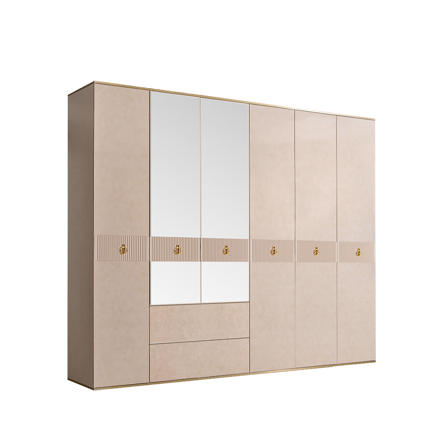 Шкаф 6-ти дверный с зеркалом, с ящиками Римини СОЛО (Латте/Золото) РМШ1/61(s)