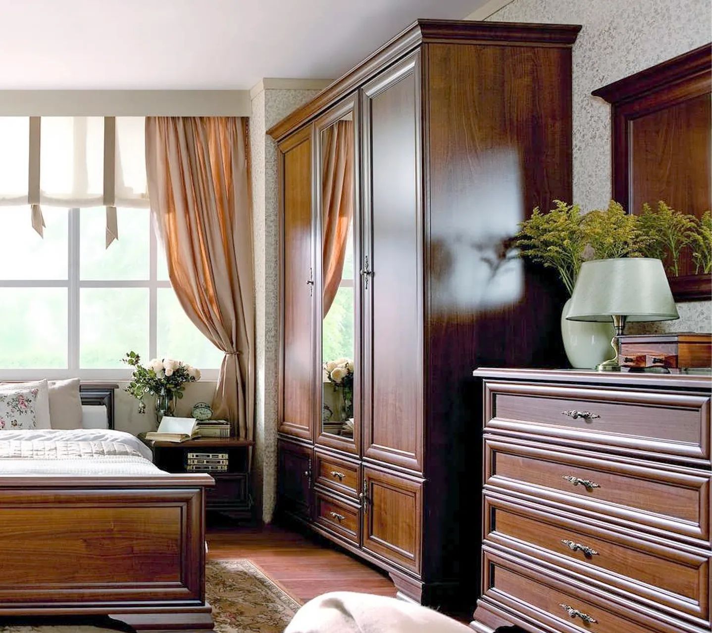 Признанным эталоном качества шкафа с зеркалом Kentaki является использование немецкой и итальянской фурнитуры. Его ящики плавно движутся по металлическим направляющим, а витиеватые ручки под бронзу наиболее отчетливо смотрятся на белом фоне. Шкаф на резных ножках с декоративным карнизом – яркое наследие классики. Такая мебель прекрасно смотрится и в лаконичных скандинавских интерьерах, контрастной неоклассике и современных направлениях типа модерн и минимализм.