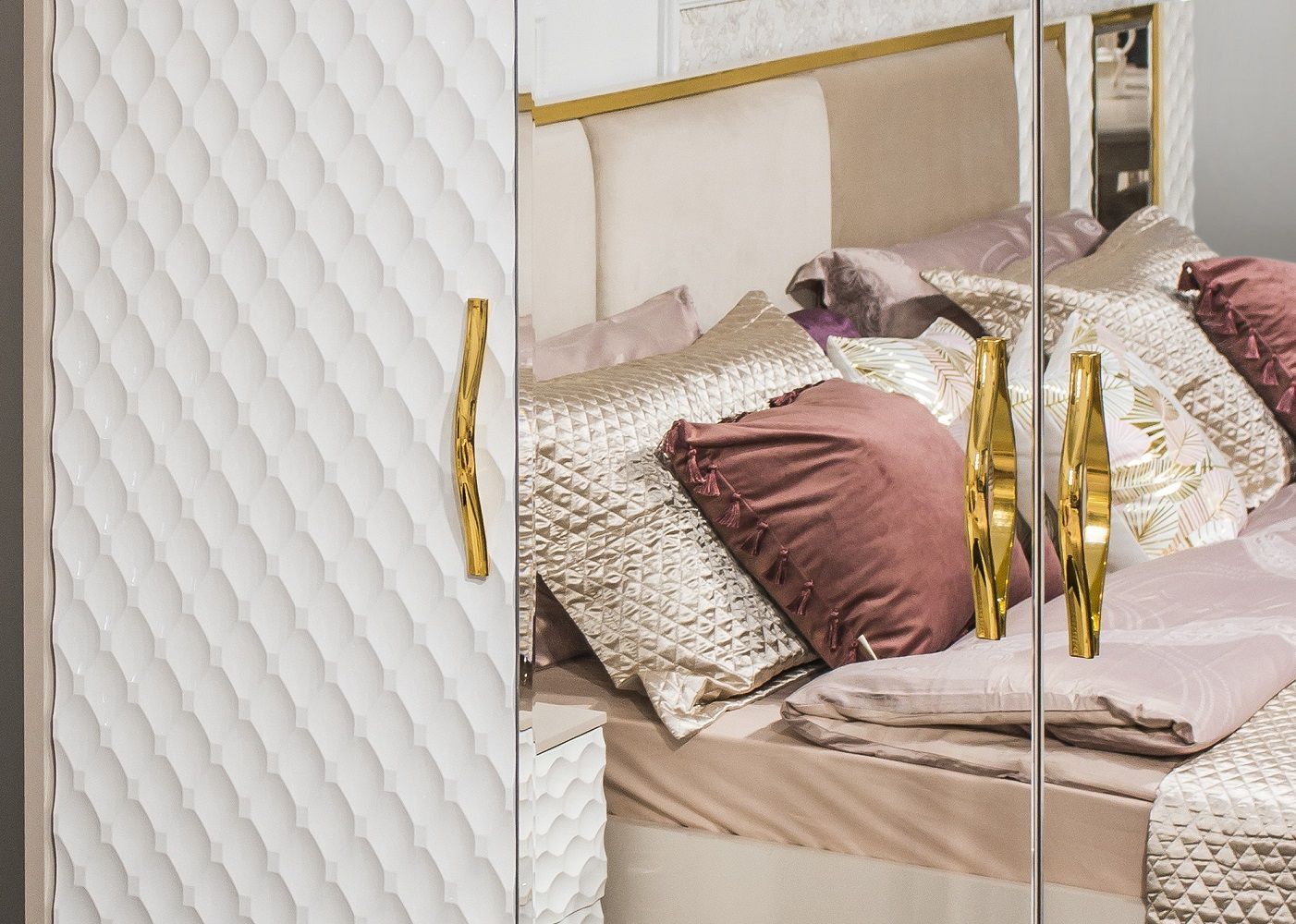 Кровать с декоративными рамками на изголовье и изножье под латунь– делает ее центром притяжения! Ведь кровать в спальне главный элемент мебели!