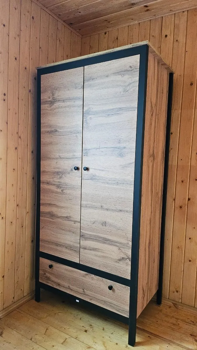 Белорусский шкаф с фасадами цвета дуб вотан и черной окантовкой гармонично впишется в интерьеры стиля лофт и других современных направлений типа хай-тек и минимализм. К нему всегда можно подобрать мебель аналогичного дизайна и оттенка.