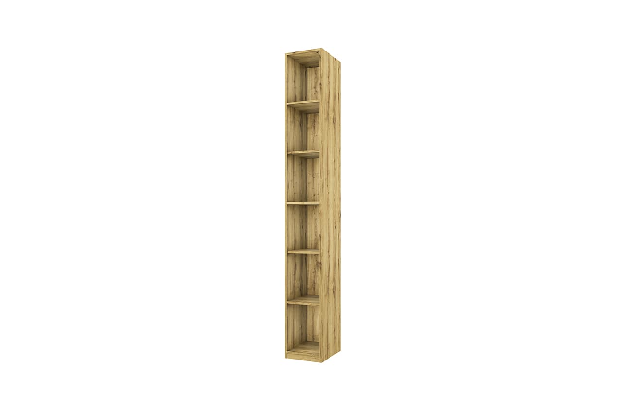 В производстве открытого узкого шкафа Modern используется ДСП, покрытая ламинированной пленкой. Его ширина составляет 30 см, а глубина – 38 см. Модель такого размера уместится в самое узкое пространство и кардинально решит вопросы хранения. Она не загромоздит интерьер и с успехом может быть использована в детской и молодежной комнате, рабочем кабинете и домашней библиотеке с современным дизайном.