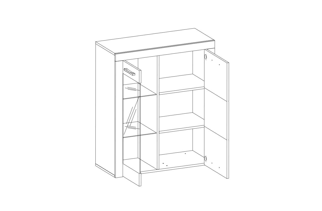 Шкаф - витрина 1V1D коллекции Oskar ‑ это негласный отсыл в прошлое. Некогда бывшая небольшим буфетом со стеклом и шторками на дверцах, сегодня она трансформировалась в элегантную конструкцию с массой возможностей. Эта витрина имеет более сложную конструкцию, где кроме стеклянной двери здесь есть глухая створка, установленная на петли польского производства.