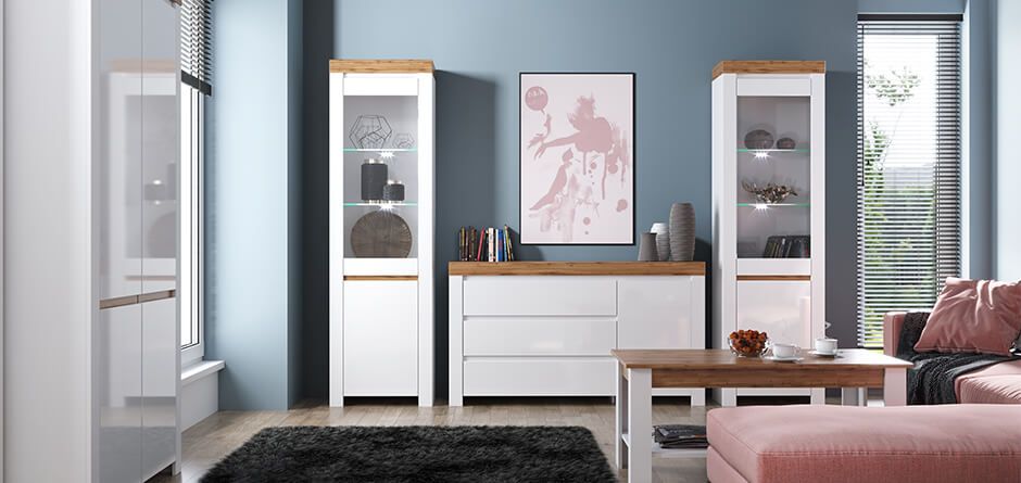 Простой и изящный шкаф витриной Taurus 1V1D изготовлен из ЛДСП и имеет все признаки современного шика. Фасады в цвете белый глянец, контурная полоса под дуб вотан и бесконечно прямые линии никогда не выйдут из моды. В такой мебели нет патины и резного декора. Основное внимание уделено наполнению и функциональности.