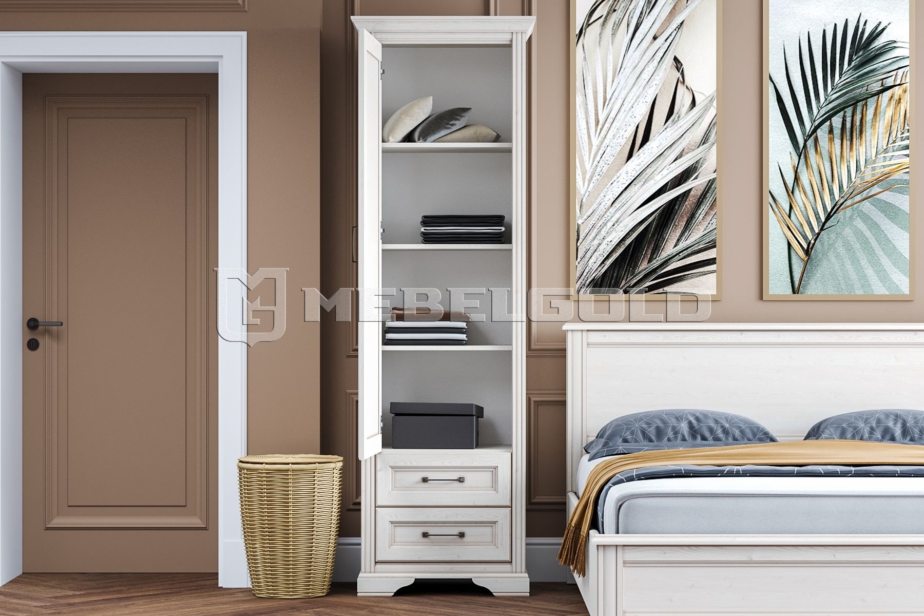 Белорусский однодверный шкаф Stylius имеет ламинированное покрытие, которое точно передает естественную фактуру и цвет сибирской лиственницы. Пенал в такой отделке выглядит не хуже эксклюзивной мебели. Его древесные фасады с эффектом состаренности и красивый молочный оттенок идеально впишется в интерьеры классического стиля и обстановку современной классики.