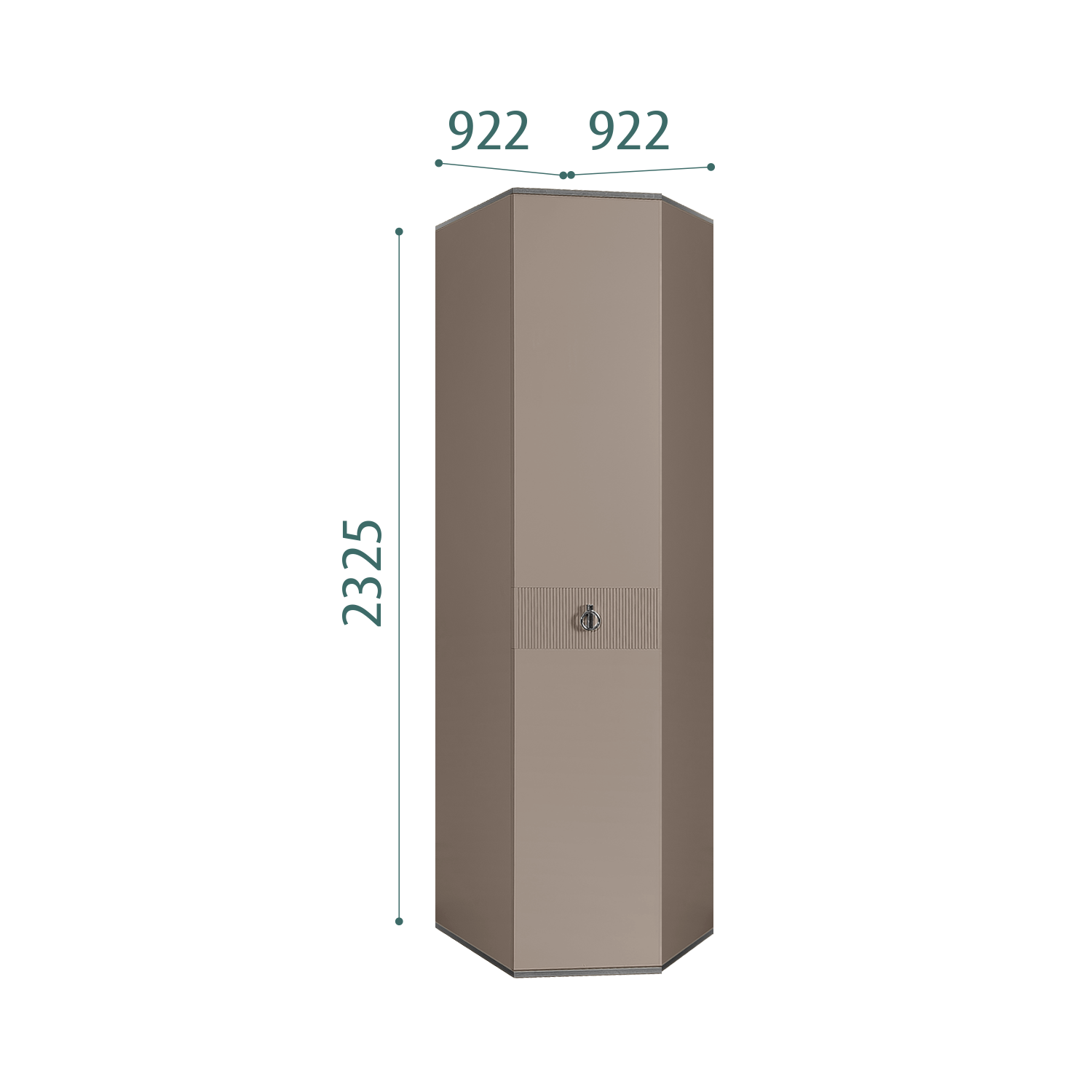 Угловой шкаф Rimini Solo имеет гладкую поверхность, в центре установлена рельефная планка. Сама модель оформлена в ретро стиле с элементами арт-деко, классики, модерна и прованса. Она подойдет прихожим и спальням современного стиля и поможет организовать вместительный блок для хранения.
