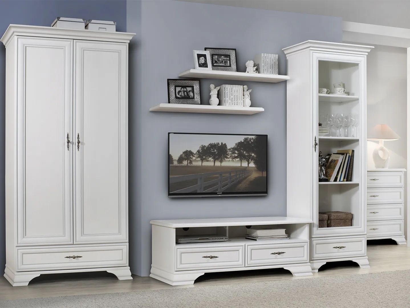 Узкая белая витрина Kentaki олицетворяет гостеприимство и прекрасно проявляет себя в прованских интерьерах, смягчает грубоватость лофта, поддерживает классику и неоклассические направления. Ее фасад содержит прозрачное закаленное стекло, сквозь которое отчетливо просматривается содержимое. При необходимости двери перевешиваются на любую из сторон.