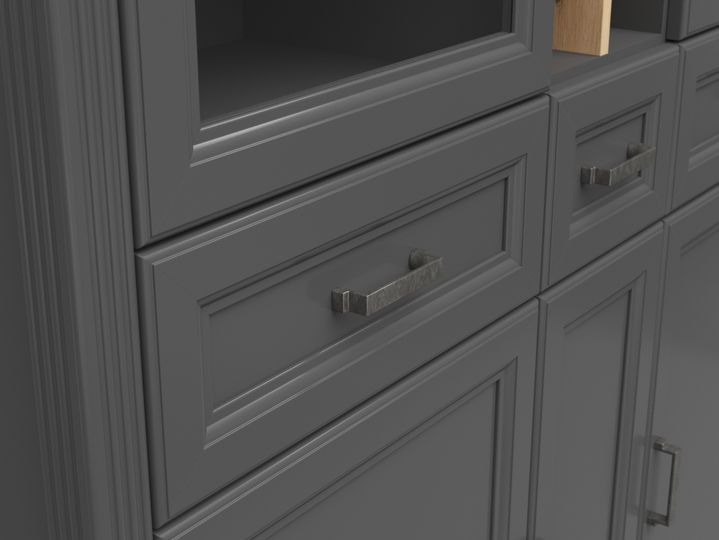 Витрина с подсветкой Jasmin изготовлена из экологически безопасных материалов (ЛДСП класса Е1, МДФ) и укомплектована выдвижными ящиками на шариковых направляющих. Они двигаются с плавным доведением и рассчитаны на среднюю и малую загрузку. Винтажный стиль отчетливо подчеркивают угловатые металлические ручки серого цвета. Их форма удобна для захвата рукой, а оттенок античного никеля отлично гармонирует с корпусом мебели. Витрина Jasmin подчеркнет лучшие стороны гостиной и столовой, придаст ей неповторимое очарование.