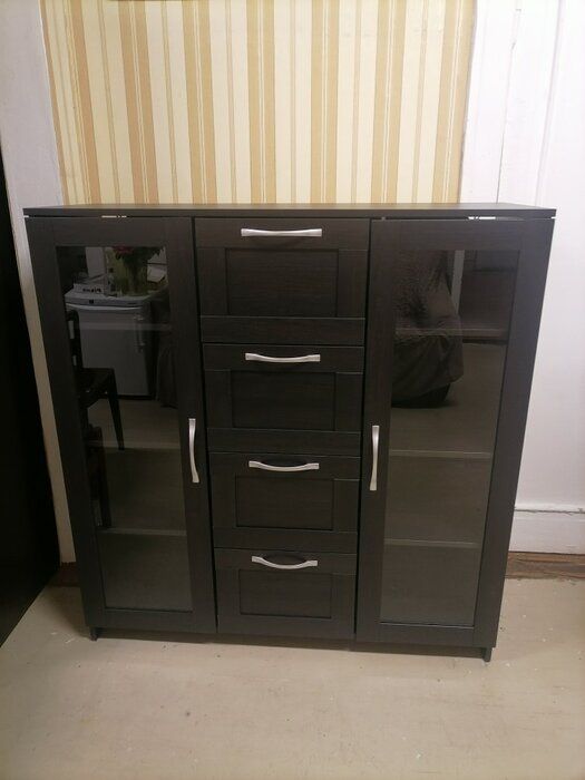 БРИМНЭС / СИРИУС тумба ИКЕА / IKEA 2 двери со стеклом и 4 ящика 117х123 Дуб Венге