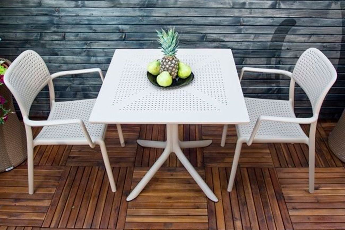 Для получения идеальной комплектации рекомендуем вам купить квадратный пластиковый стол Clip 80 от Nardi со стульями Bora и Bora Bistrot или креслами Acquamarina и Darsena из серии LEKKO от итальянских дизайнеров.