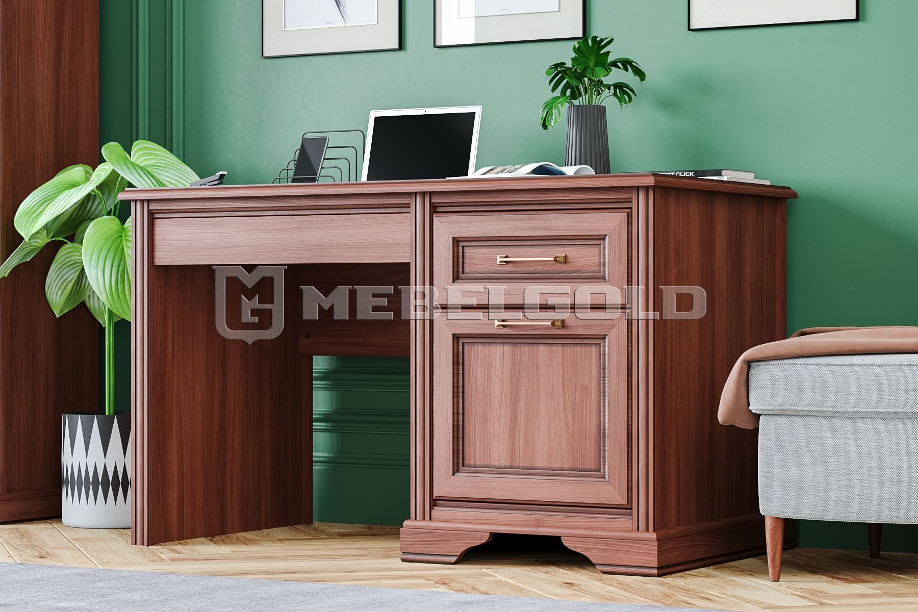 Отличительная особенность письменного стола Stylius – наличие фрезерованных рамок с легкими филенками, европейской фурнитуры и древесной текстуры в цвете орех донской. Такую мебель станет неотъемлемым союзником рабочего кабинета, спальни и детской комнаты, оформленной в классическом и неоклассическом стиле.