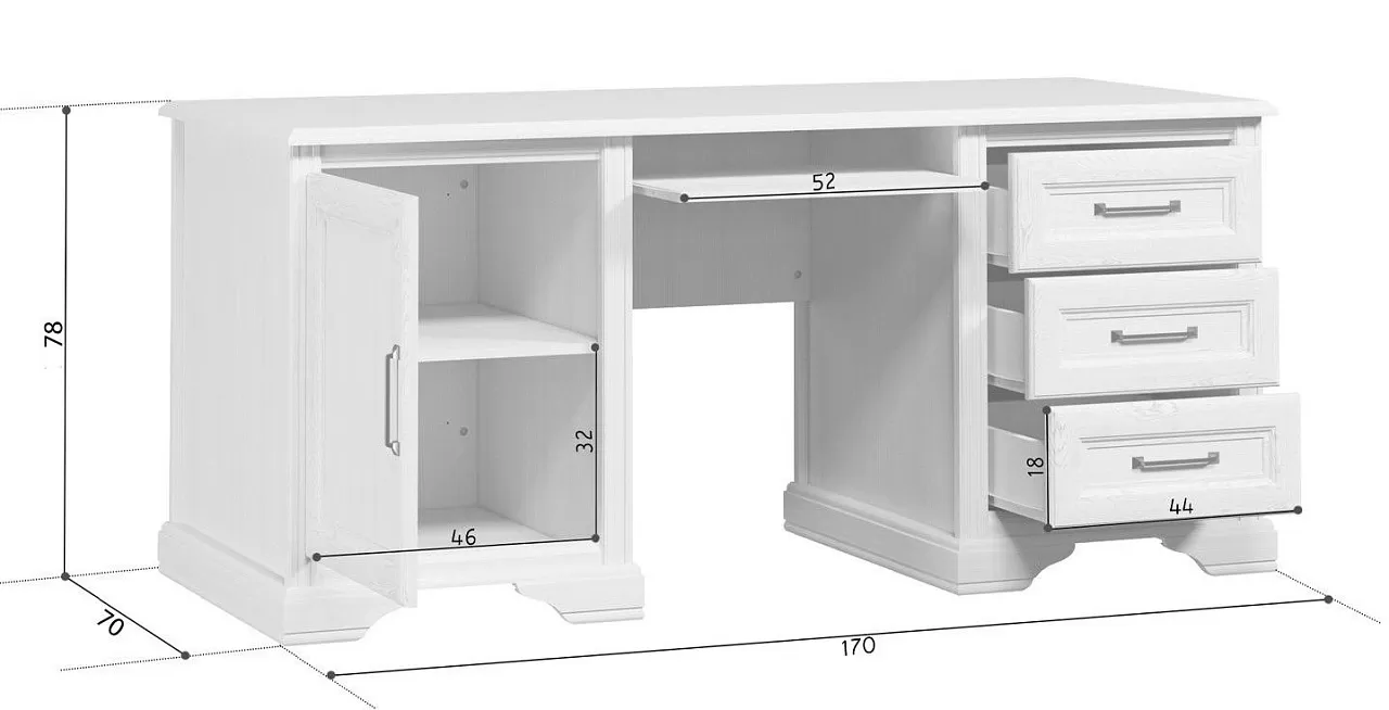 Письменный стол коллекции Stylius имеет ярко выраженные черты классического дизайна, подчеркнутого элегантной патиной, фигурными ручками и четко обозначенными карнизами. Такая мебель впишется в обстановку современной классики и позволит обставить молодежную комнату, спальню, кабинет и гостиную. Это то, что помогает организовать рабочее место и максимально адаптировать его к своим потребностям.