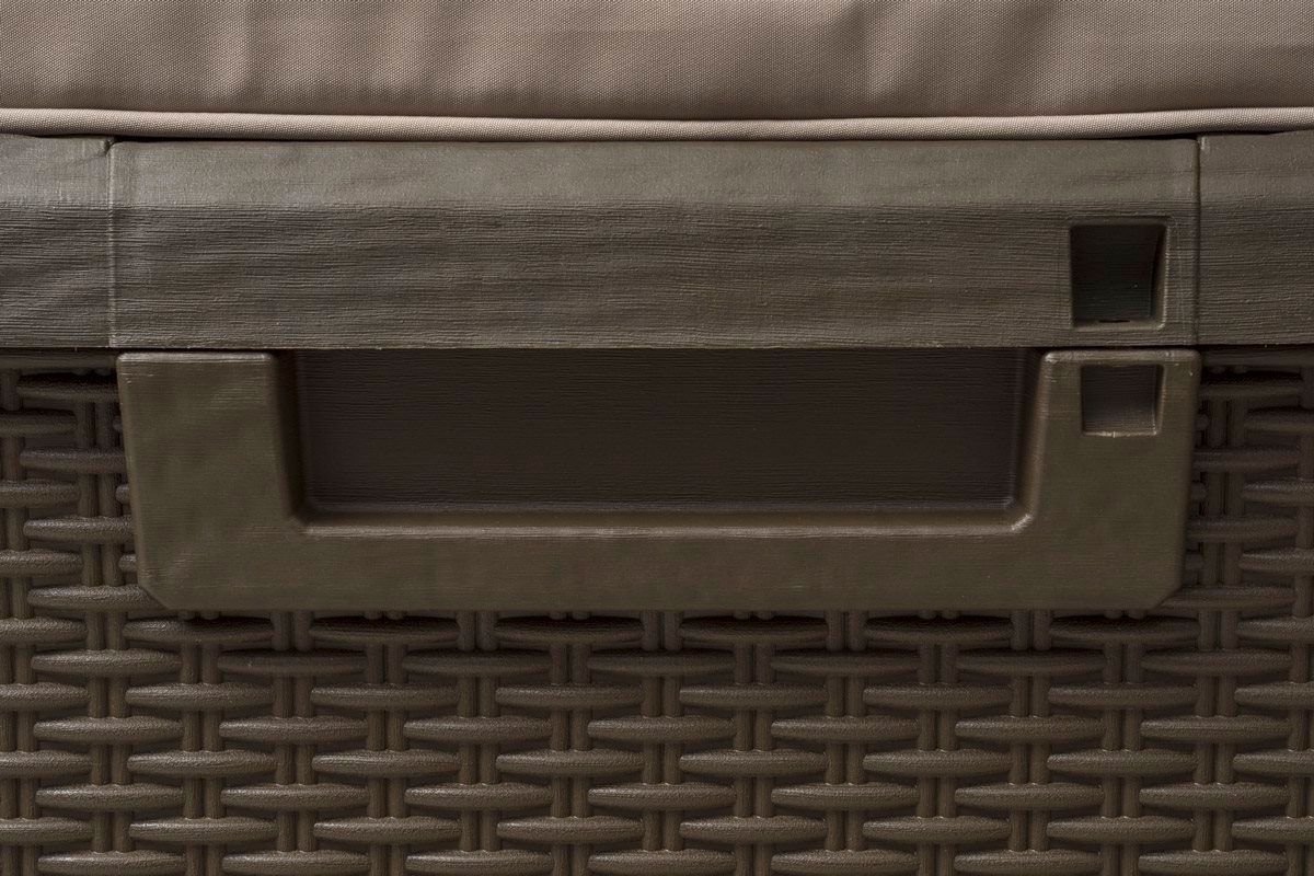Ящик Santorini Plus  - прочная модель в стиле ротанг от итальянского производителя Toomax. Выдерживает вес двух взрослых человек. Сборно-разборный, компактный в перевозке, всепогодный сундук. Ручки для переноски. Верхняя крышка с гидролифтом для плавного открывания и удерживания крышки, предусмотрены отверстия для навесного замка.