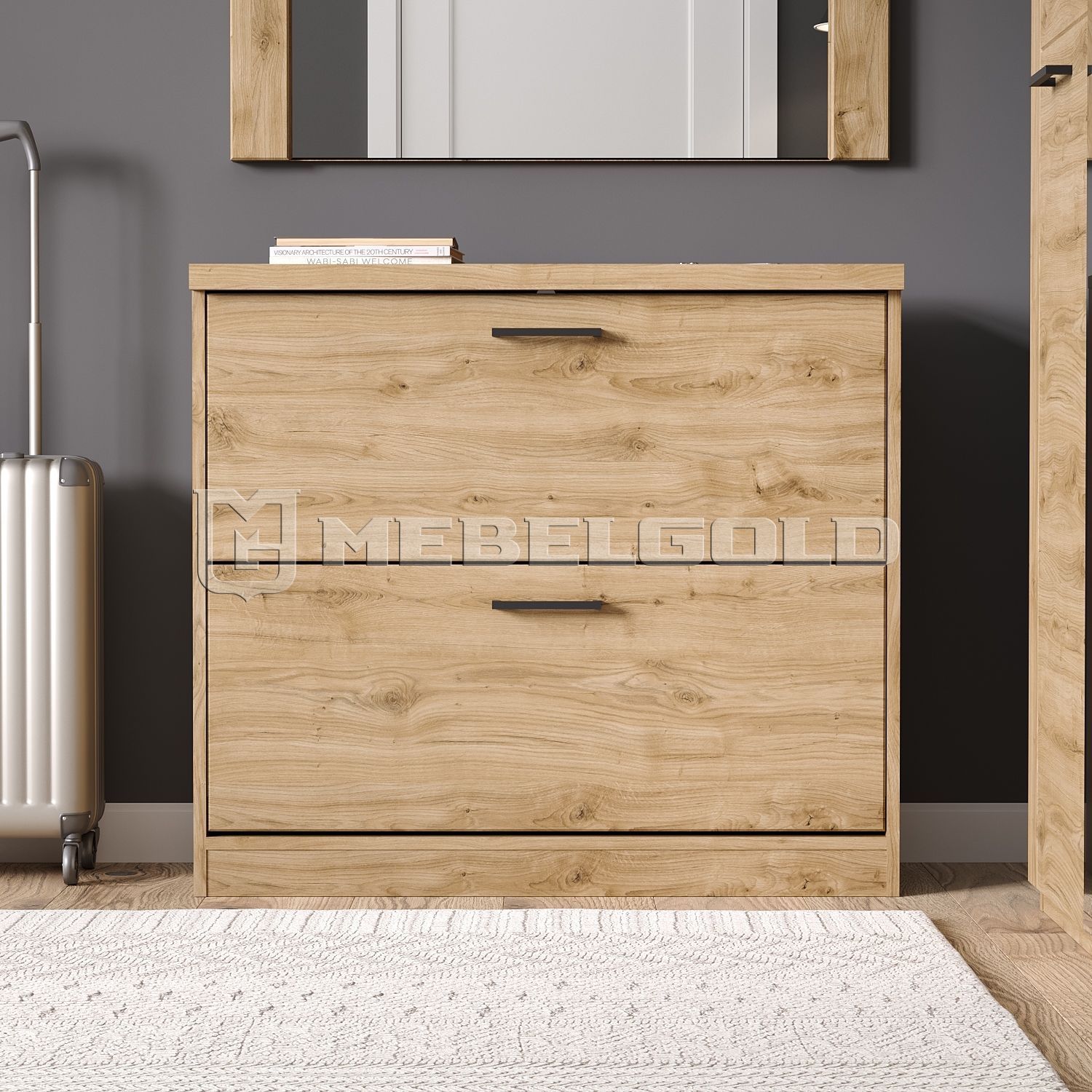 Обувная тумба Doorset 2D изготовлена на белорусской фабрике Anrex с использованием ЛДСП толщиной 16 мм и МДФ. По характеристикам эти материалы схожи с натуральным деревом, но лишены его недостатков. Покрытие ламинированной пленкой не позволяет им расслаиваться под воздействием влаги и резких колебаний температур. Дополнительное удобство и надежность такой мебели придают кронштейны европейского производства.