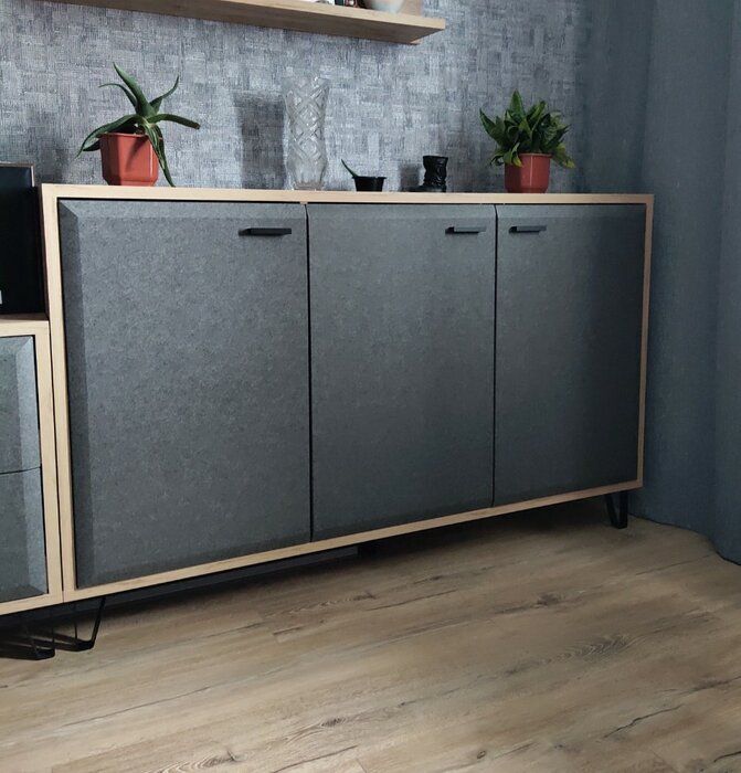 Напольная белорусская тумба Grace имеет удобные внешние размеры. Ее ширина составляет 143 см, а высота – 89 см. Наиболее гармонично она смотрится у стены, при этом, занимает небольшое пространство. Дверцы тумбочки двигаются плавно и бесшумно за счет надежной фурнитуры немецкого бренда Hafele. Такая мебель может быть установлена в спальне, прихожей, детской, гостиной и рабочем кабинете.
