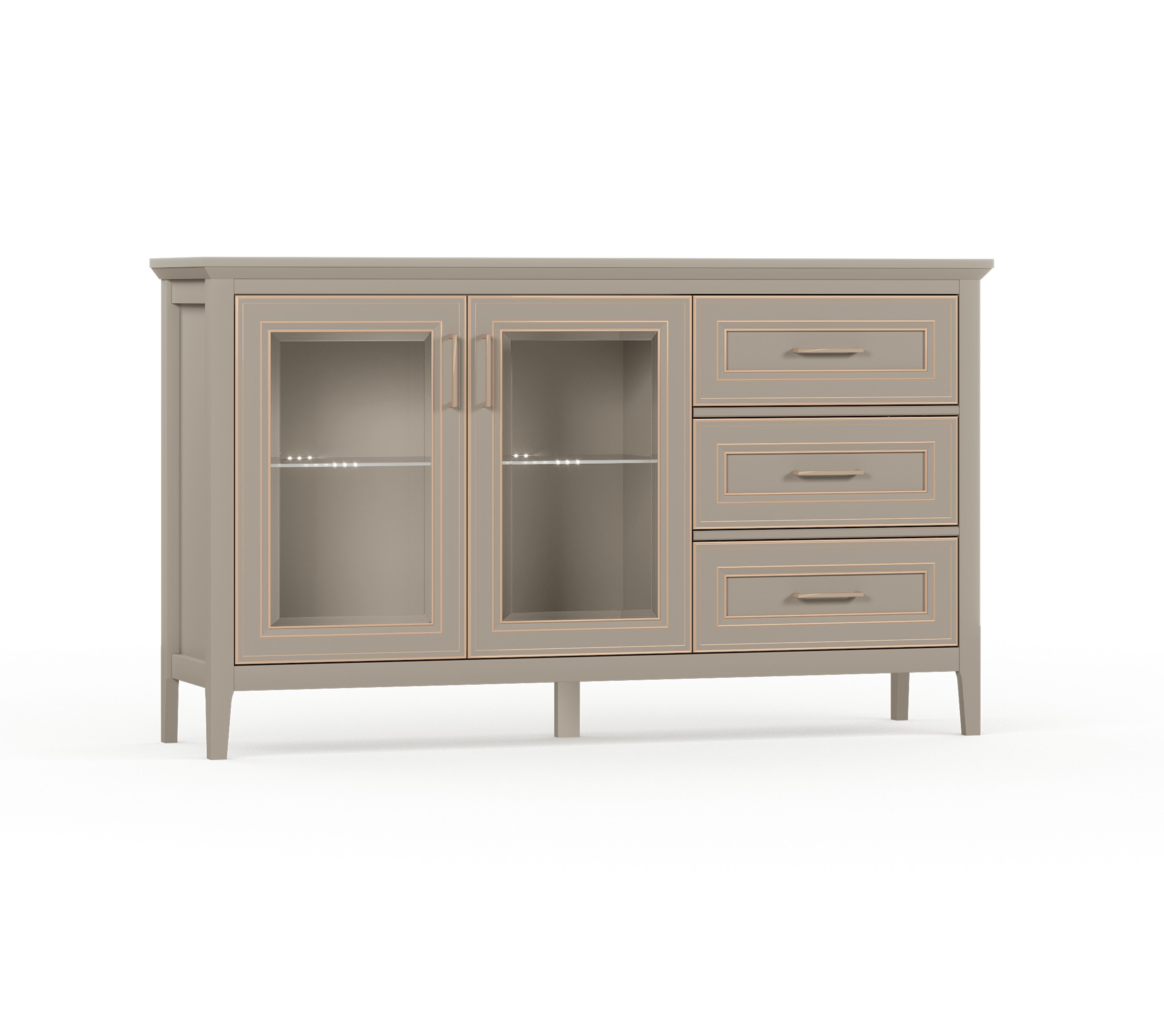 Тумба-витрина серо-глиняного цвета Classic BRW с металлическими ручками под медь впишется в гостиные и кухни классического стиля. Она добавит обстановке тепла и на высшем уровне организует хранение вещей. Тумба с элементами витрины «Классик» станет долгосрочным вложением в комфорт и украшение интерьера.