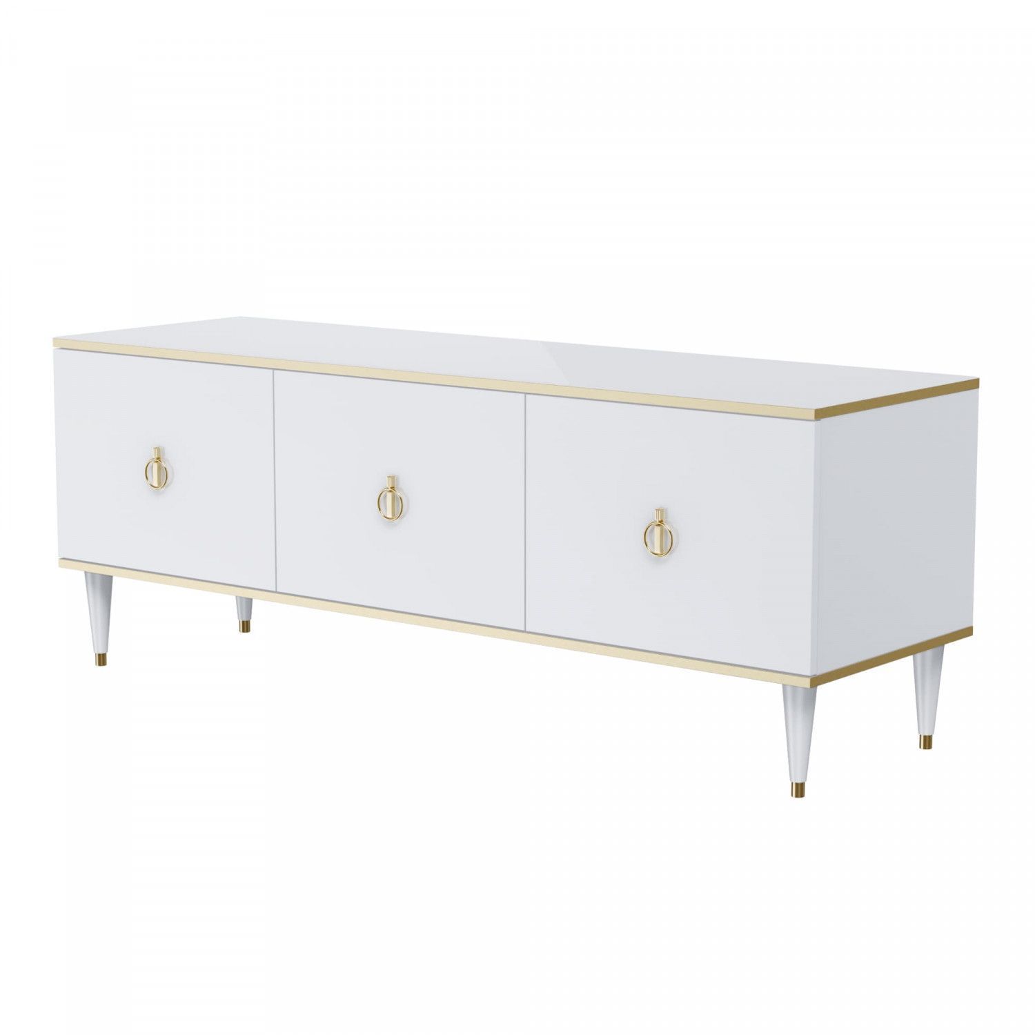 Тумба под телевизор (3 двери) Римини (Белый/Золото) РМТ-2