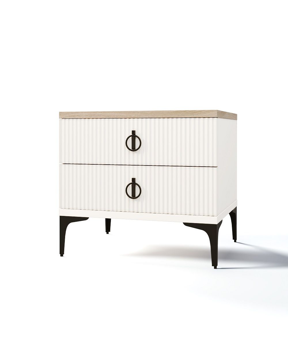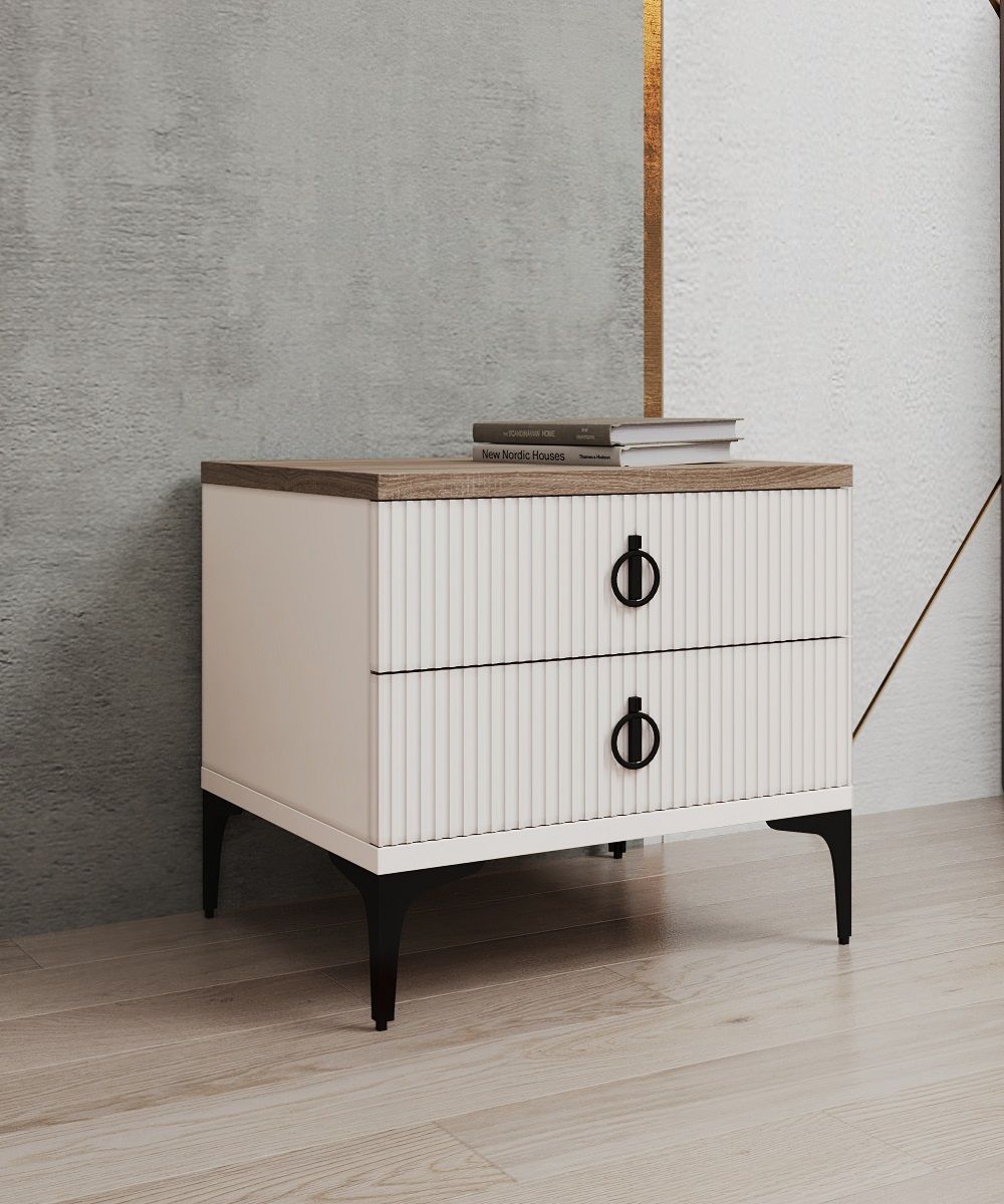 Дополняют кровать стильные и функциональные прикроватные тумбы "Стелла". Их рельефные фрезерованные фасады и элегантные ручки делают их настоящим украшением спальни. Ящики оснащены современными бесшумными механизмами с доводчиком Внутри достаточно места для хранения личных вещей.
