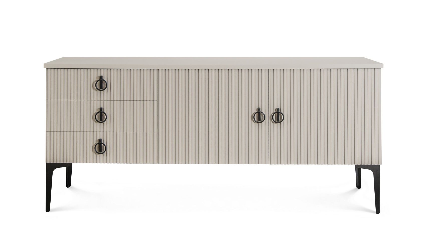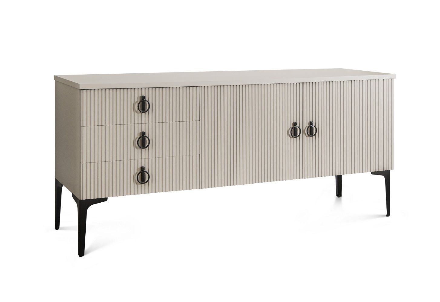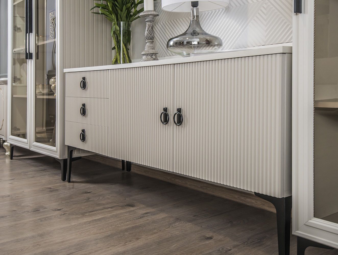 Каждая деталь спальни тщательно продумана, чтобы подарить вам не только максимальный комфорт и эстетическое удовольствие, но и уверенность в высоком качестве мебели. Корпуса и столешницы модулей выполнены из ламинированной древесной плиты европейского качества, Фасады из природного МДФ задекорированы рельефной фрезеровкой и авторский стиль фабрики ЭРА — это финишное покрытие матовая итальянская эмаль ярко серого цвета.