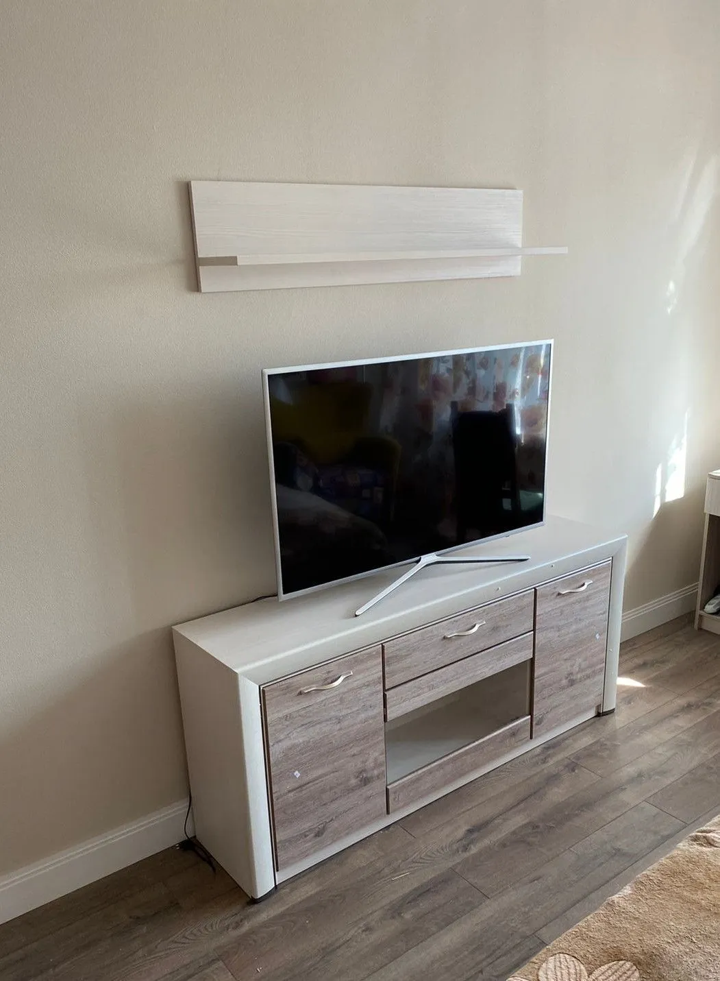 Увеличенная высота тумбы Olivia RTV 1V2D1S предоставит еще больше возможностей для размещения на ней любой техники. Эта модель шириной 160 см и высотой 71 см подойдет для ТВ с любой диагональю, а также установки мультимедийных устройств и приставок. Она содержит одно открытое отделение, выдвижной ящик и три распашных дверцы с полками внутри. Удобному хранению ТВ техники способствует удлиненная форма модели.