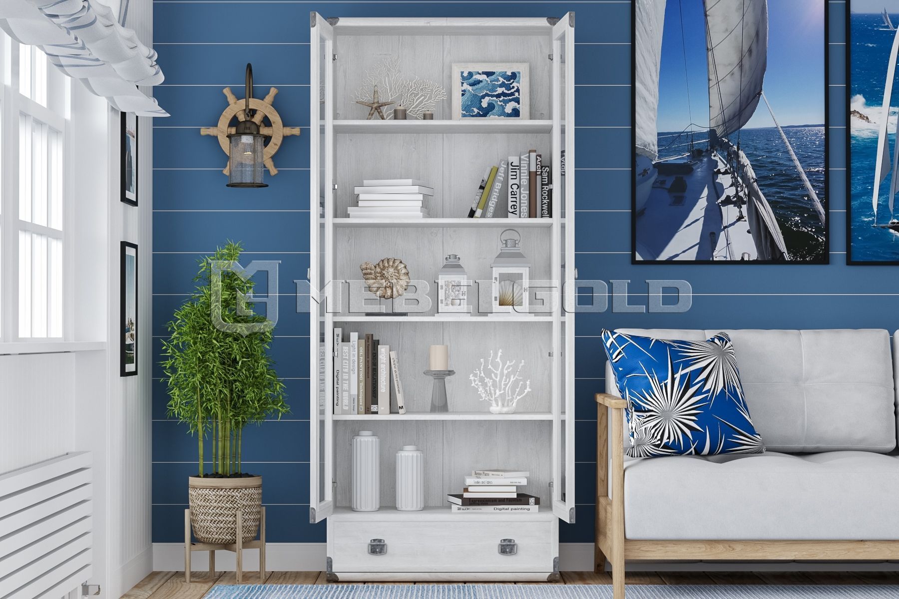 В гостиной элегантная витрина легко станет частью гарнитура, в комнате ребенка поможет организовать учебную зону, а в кухне станет удобным местом для хранения фарфора и хрусталя. Фасады светлого цвета сосна каньон идеально вписываются в темные и светлые интерьеры в стиле классика и кантри.