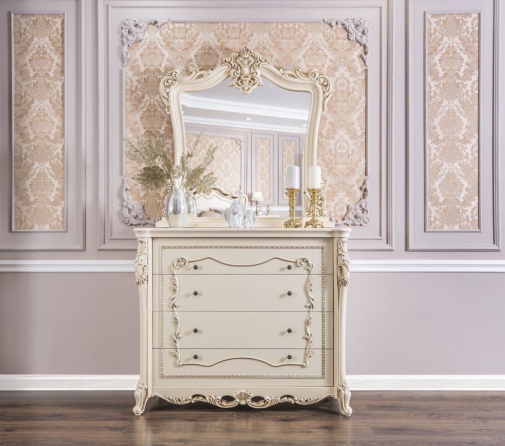 Любителям уютной классики и утонченного декора рекомендуем обратить внимание на изящное зеркало для комода в роскошной раме «Джоконда». Эта модель – настоящая изюминка коллекции «Эра», изготовленная в условиях фабрики с учетом российских стандартов. Она оформлена в лучших традициях классических интерьеров и сочетает элегантность с теплым оттенком крем и отделкой золотом.
