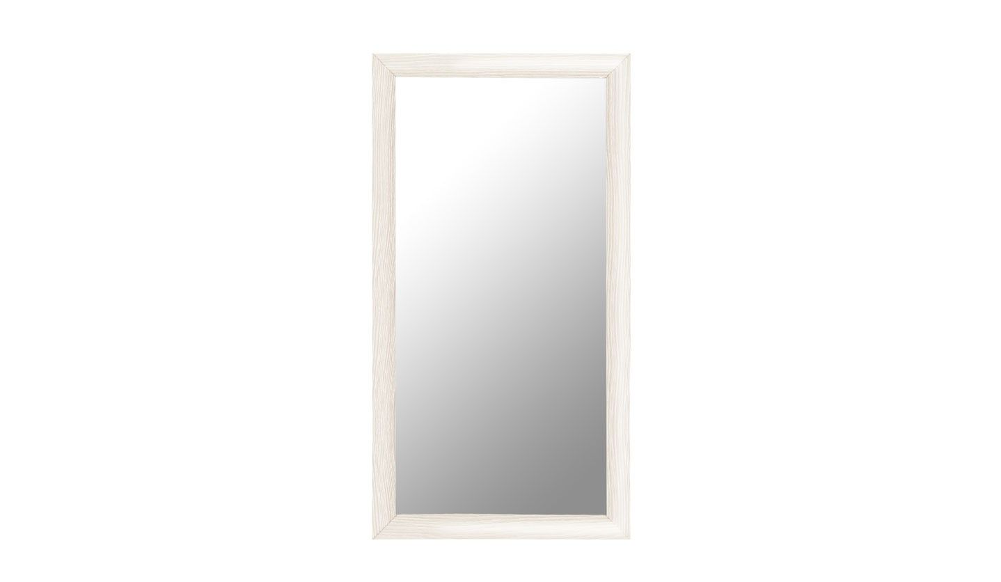 В отделке современного зеркала Koen преобладают прямые линии и выразительная древесная текстура. Оно оформлено в элегантную раму из ЛДСП/МДФ с постельным оттенком снежного ясеня и подчеркнутыми темными прожилками. Белый багет с налетом французского флера придает полотну благородный вид и особенно отчетливо выделяется на фоне темной стены.