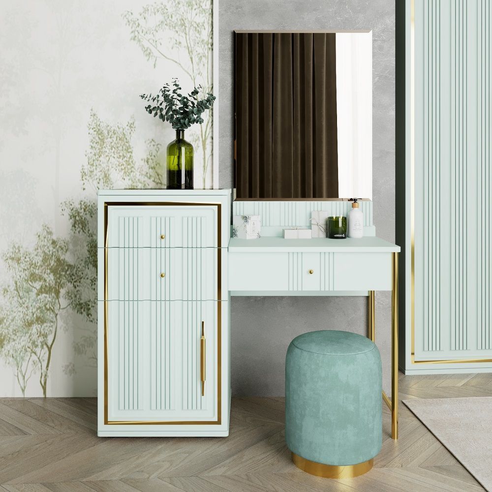 метализированный декор и фактурная фрезеровка на фасадах — авторский стиль Эра оригинальные металлические опоры в цвете латунь  - облегчают пространство и добавляют возможность использовать современные гаджеты -  уборка с помощью робота пылесоса